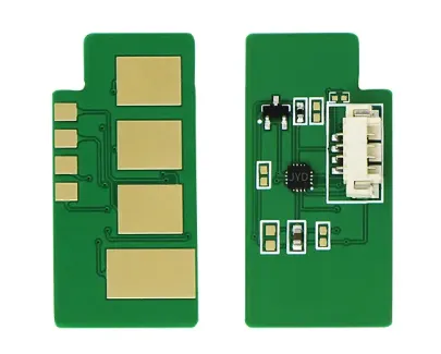 Чіп - це не велика за розміром мікросхема, в яку вшита інформація про ресурс самого картриджа, забезпечений функцією обміну даними з принтером. Простіше кажучи, завдяки чіпу апарат може порахувати кількість надрукованих сторінок. У момент, коли лічильник сторінок підійшов до кінця, ви побачите попередження про те, що картридж закінчився і його необхідно замінити, навіть якщо в бункері картриджа залишився невикористаний тонер.