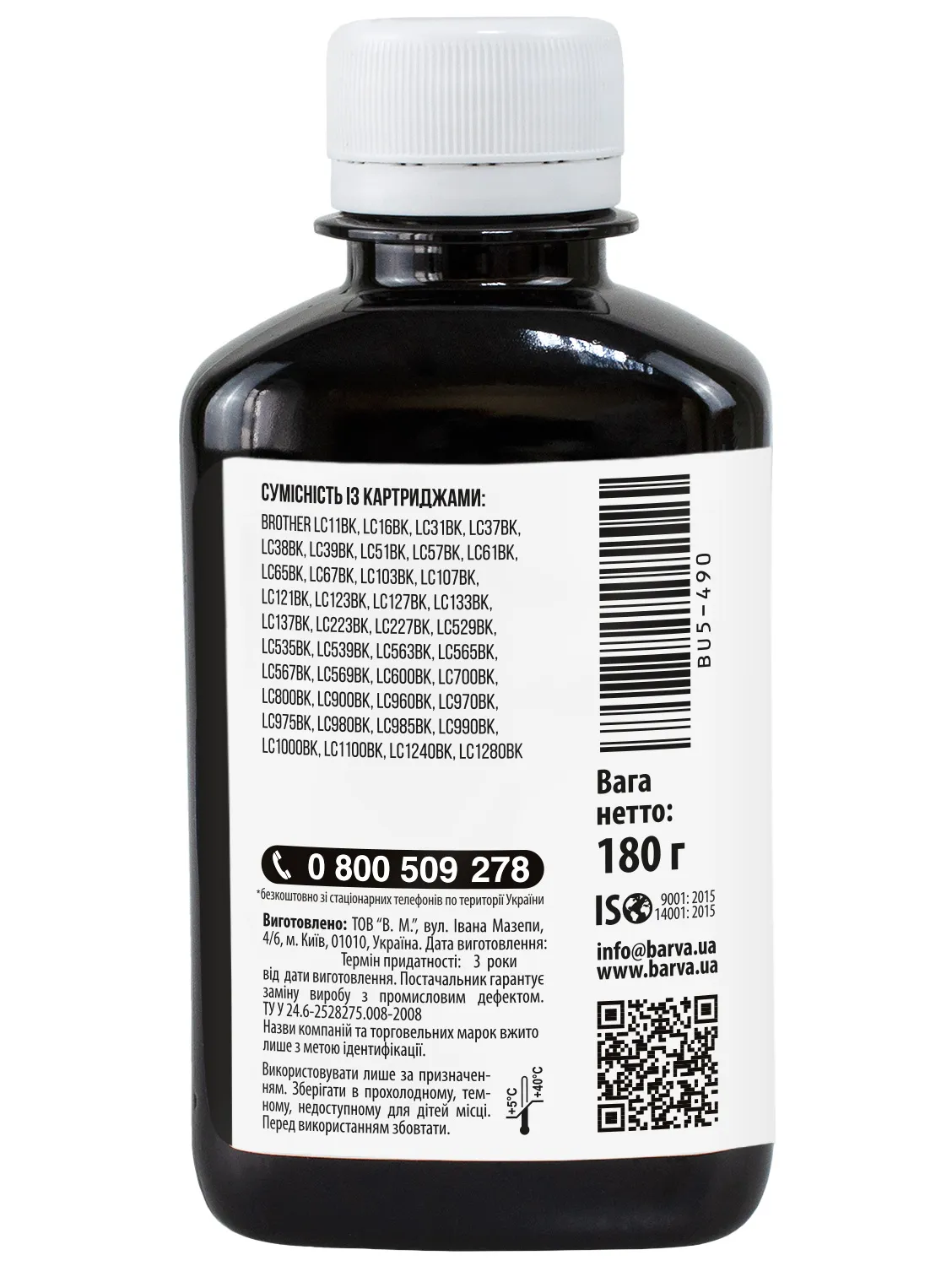 - Фасовка чорнил Barva 180 гр./180 мл буде зручною для користувачів, якім необхідно багато друкувати – в даному випадку вартість чорнил буде нижчою, ніж в більш маленьких фасовках (90 гр. або 100 мл).