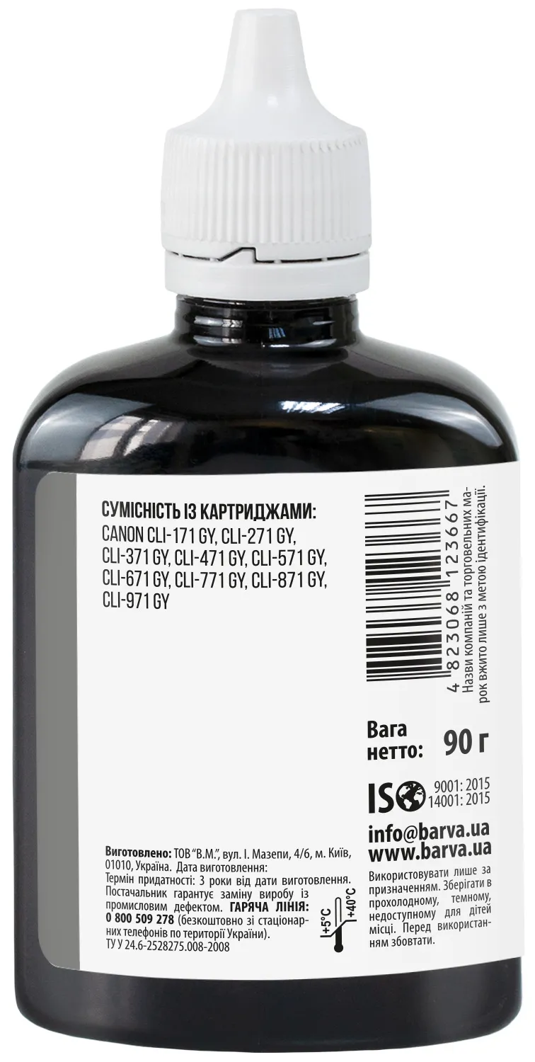 Чорнило сумісне для Canon CLI-471 GY спеціальне 90 г, водорозчинне, сіре Barva (C471-557) опис: