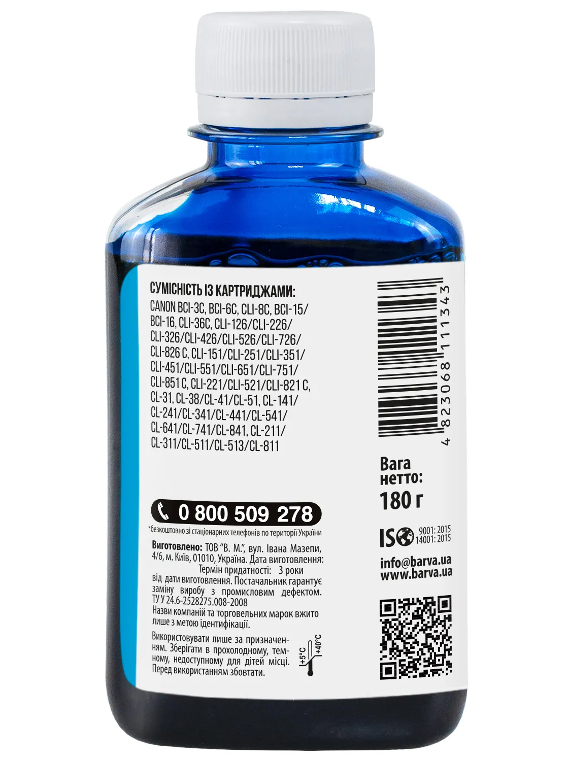 Дана фарба для принтера Canon Barva має фасовку – 180 мл: