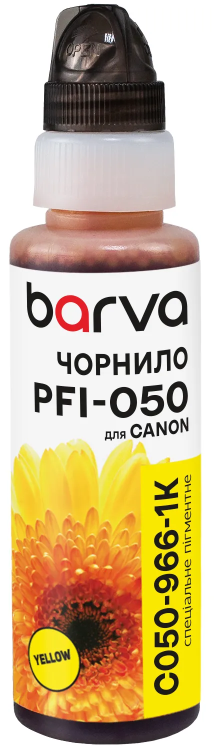 - Чорнило для Canon PFI-050 Y спеціальне 100 мл, флакон OneKey (1K), пігментне, жовте Barva (C050-966-1K)