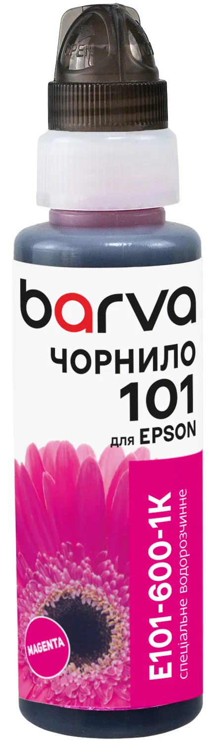 - Чорнило сумісне для Epson 101 M спеціальне 100 мл, флакон OneKey (1K), водорозчинне, пурпурове Barva (E101-600-1K)