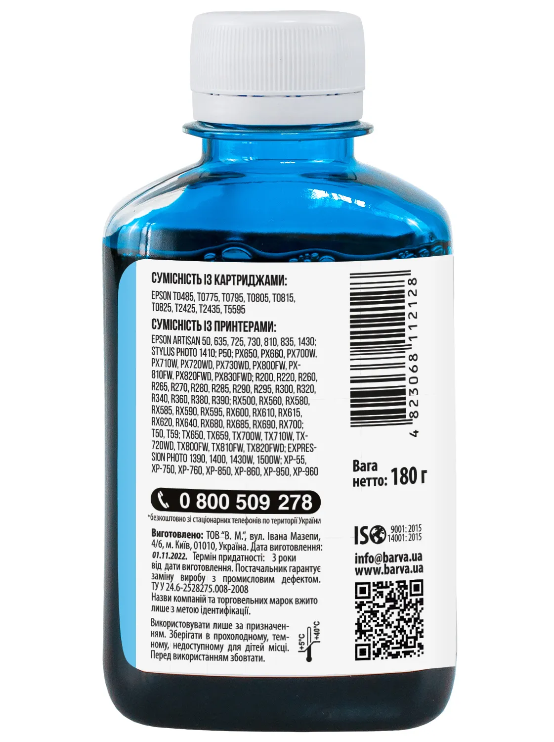 Дана фарба для принтера Epson Barva має фасовку – 180 мл: