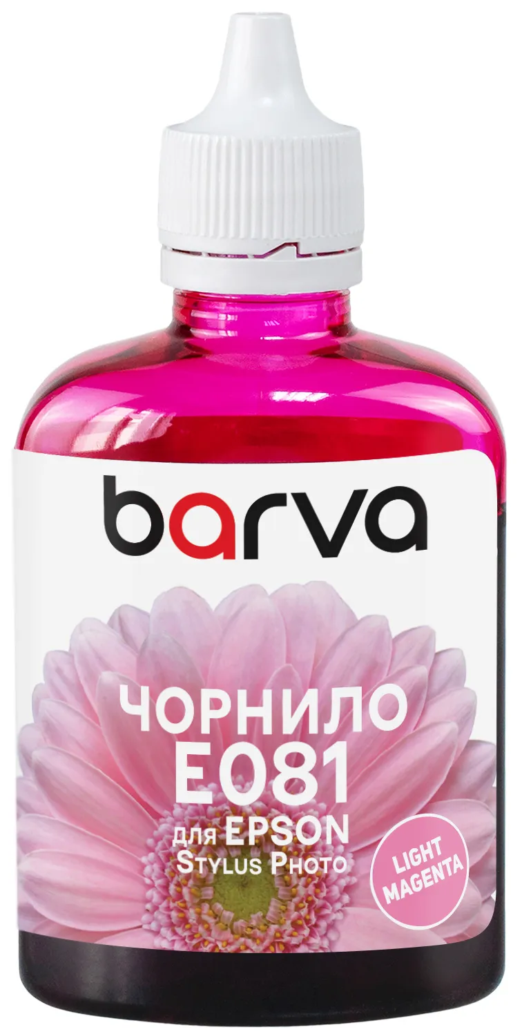 Більшість з нас чули, що на відміну від лазерної техніки, яка формує зображення за допомогою тонера, струменева техніка використовує для друку спеціальні чорнила (краска для принтерів). Чорнило сумісне для Epson T0486/T0806/T0816 спеціальне 90 г, водорозчинне, світло-пурпурове Barva (E081-329) використовується переважно для заправки ПЗК та СБПЧ. Заправка картриджу також можлива, для цього необхідно зняти носик та вилучити чорнила шприцом.