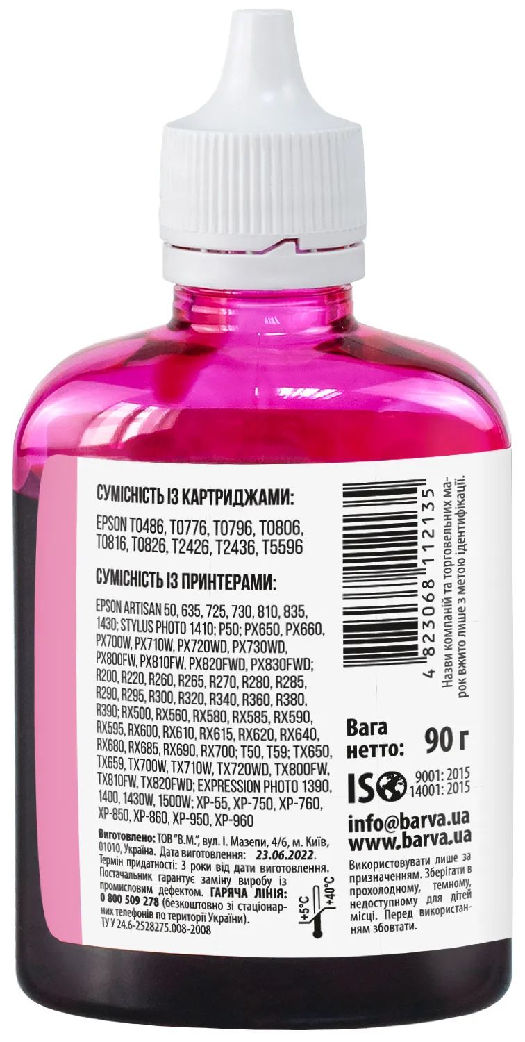 При виборі чорнила для принтерів Вам також необхідно звернути увагу на колір картриджа, який плануєте заправляти. Дані чорнила Barva мають колір – light magenta (світло пурпурний).