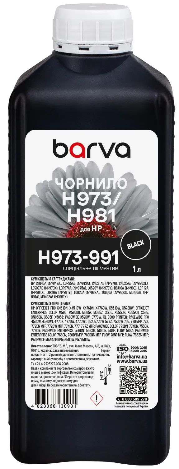 Чорнило для HP 970/973/981 спеціальне 1 л, пігментне, чорне Barva (H973-991) опис: