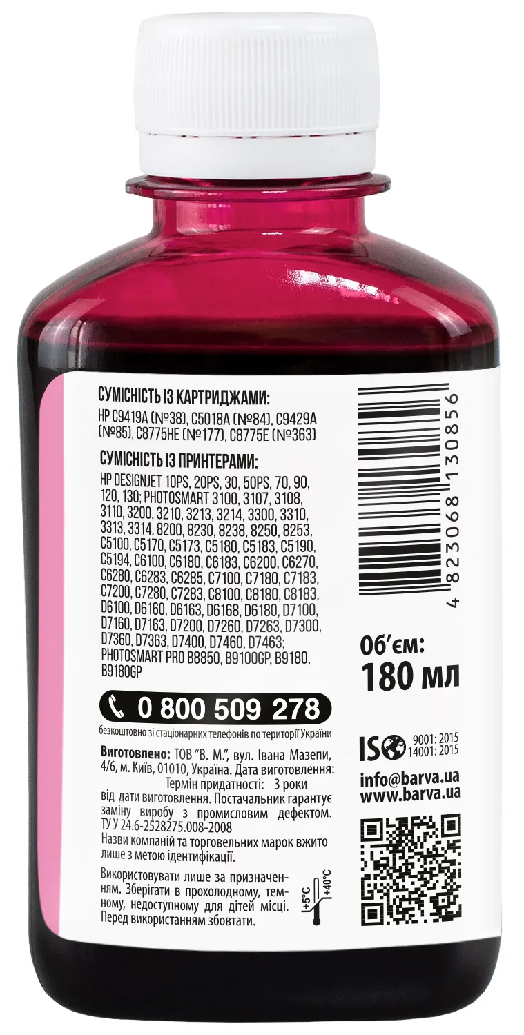Дана фарба для принтера HP Barva має фасовку – 180 мл: