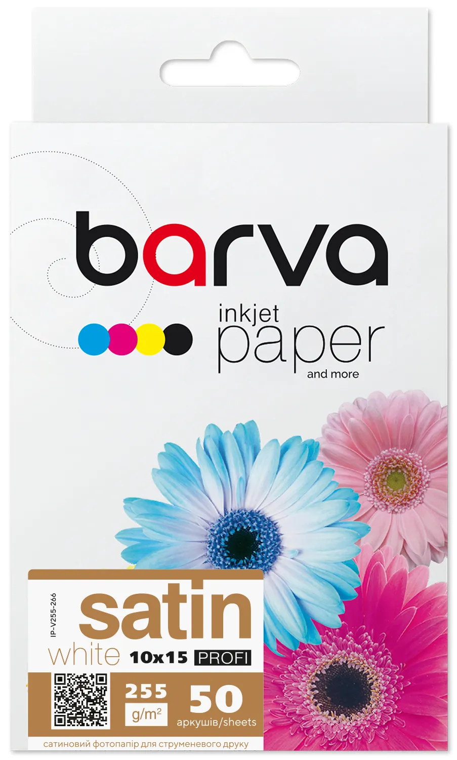 Фотопапір білий сатин 255 г/м2, 10x15 см, 50 арк Profi Barva (IP-V255-266) опис