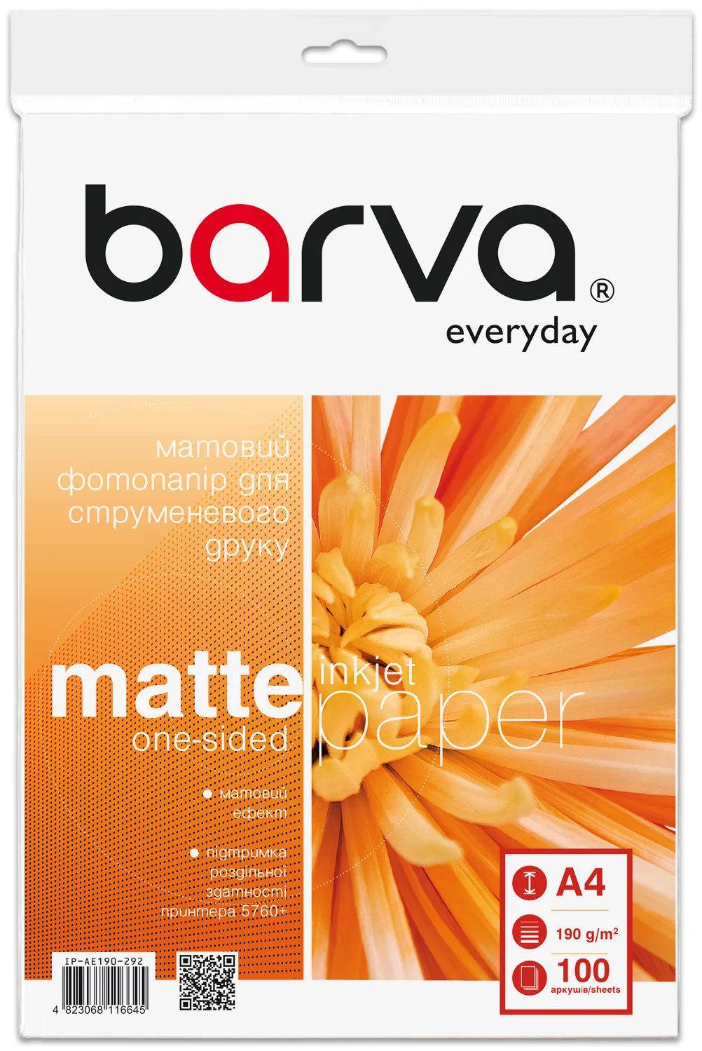 Фотопапір матовий 190 г/м2, A4, 100 арк Everyday Barva (IP-AE190-292) опис