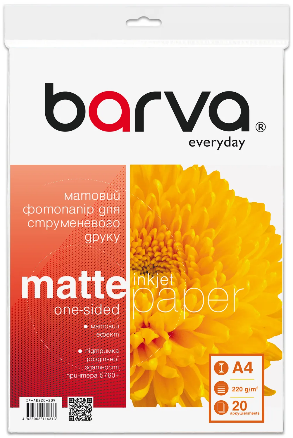 Фотопапір матовий 220 г/м2, A4, 20 арк Everyday Barva (IP-AE220-209) опис