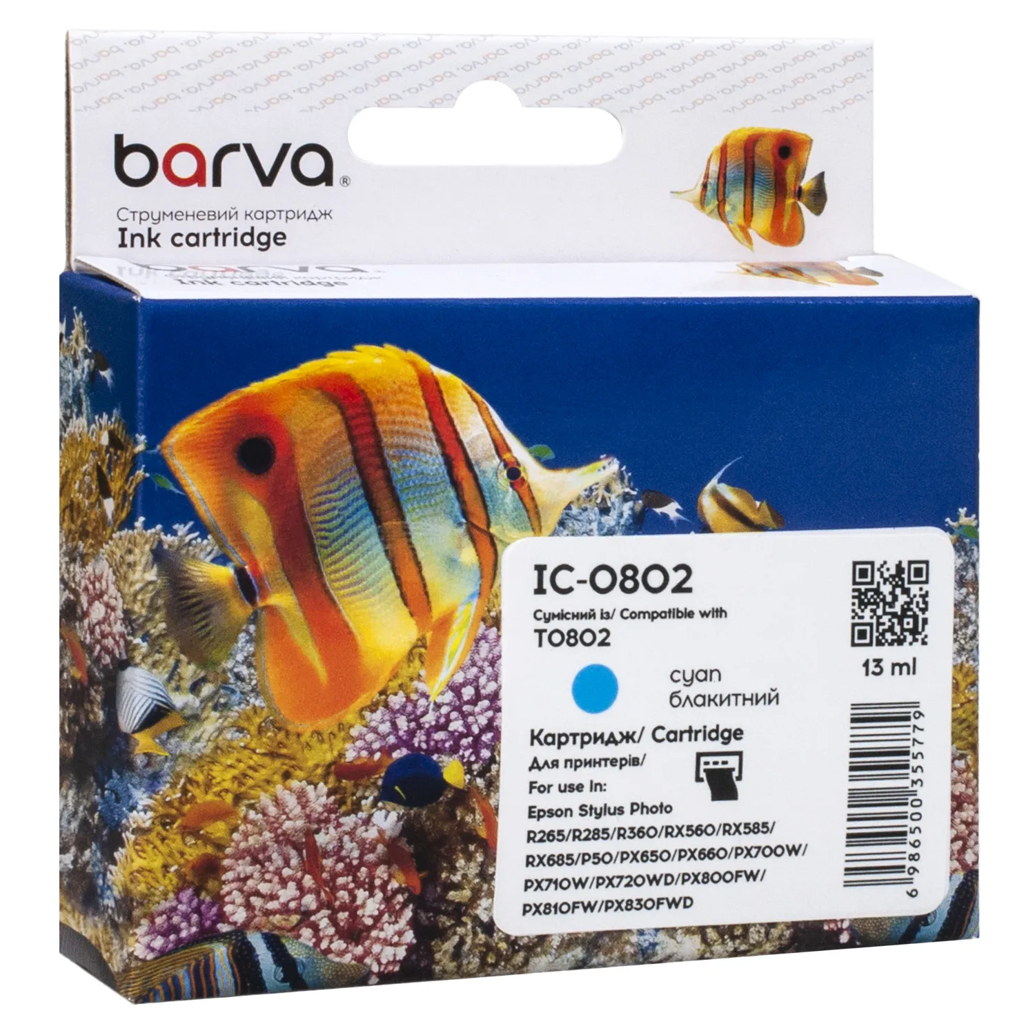 Картридж сумісний Epson T0802 (C13T08024010/C13T08024011) 935 арк, блакитний Barva (IC-0802)