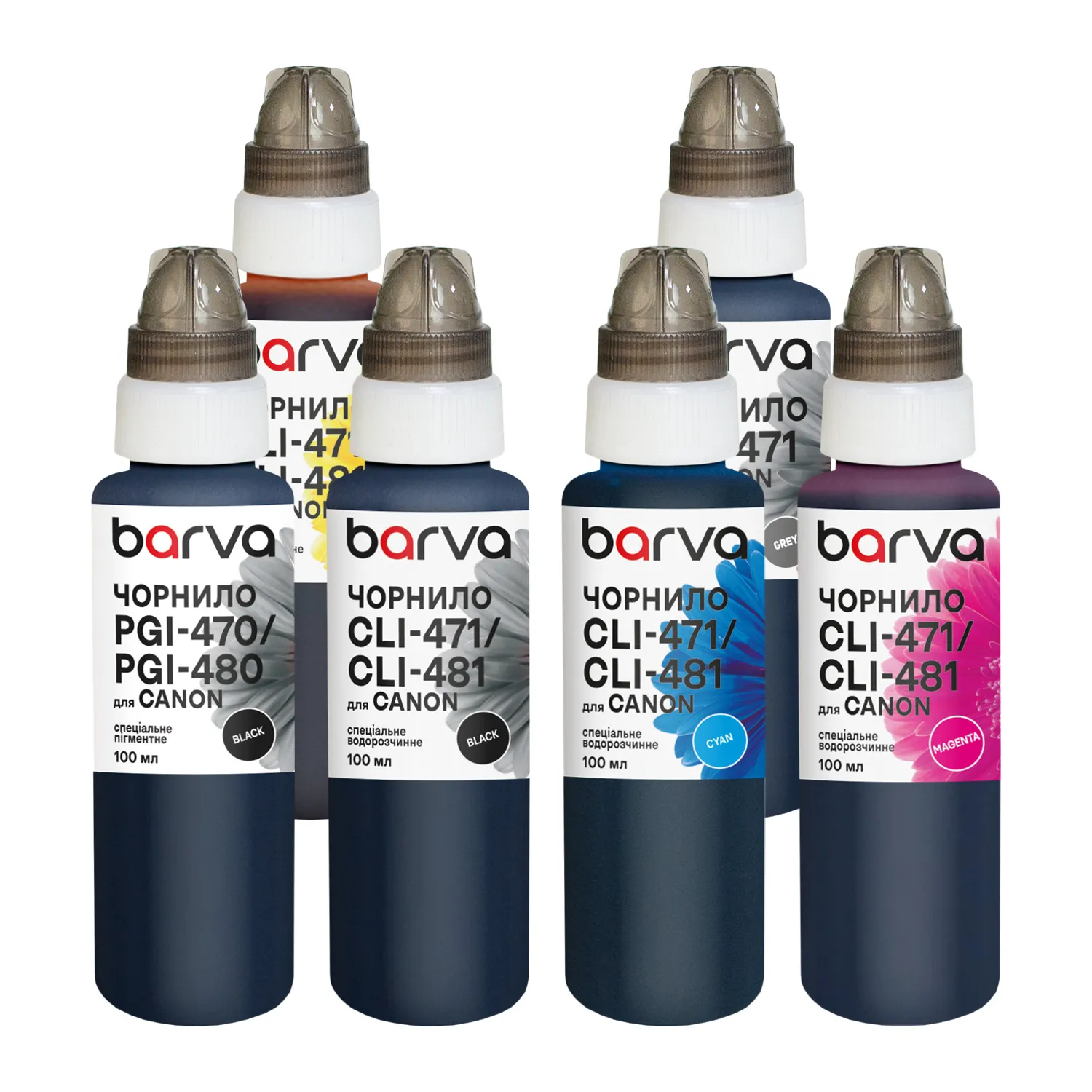 Комплект чорнил для Canon PGI-470PGBK + CLI-471BK/C/M/Y/GY спеціальні 6x100 мл, пігментне/водорозчинні, PGBK/BK/C/M/Y/GY Barva (CPGI470-100-2MP)