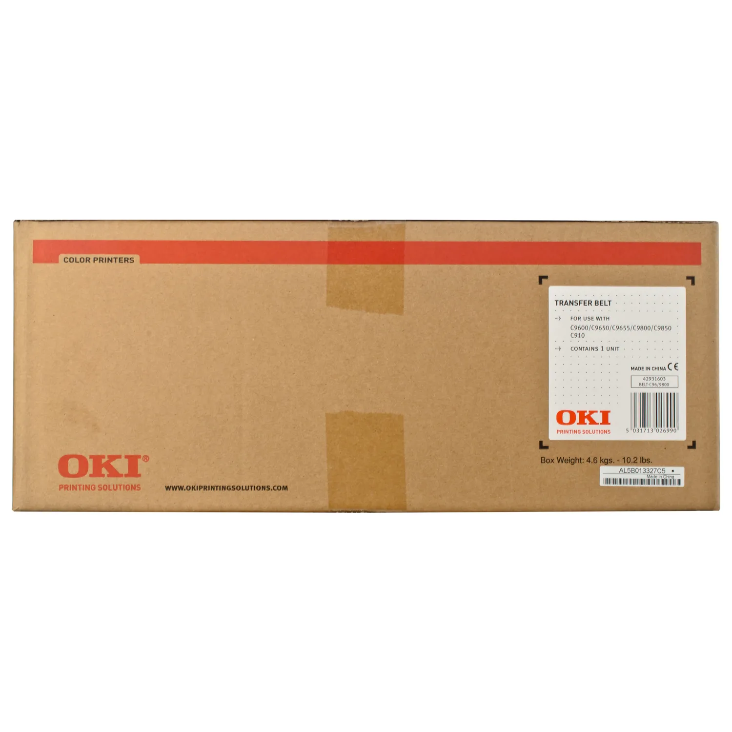 Ремінь переносу - використовується в деяких моделях кольорових лазерних пристроїв для переносу зображення, тонери різних кольорів спочтатку потрапляють на ремінь, а потім переносяться на папір. Ремінь переносу зображення C9600 Oki (42931603) може бути використаний в друкуючих пристроях торговельної марки Oki, вказаних у сумісності.