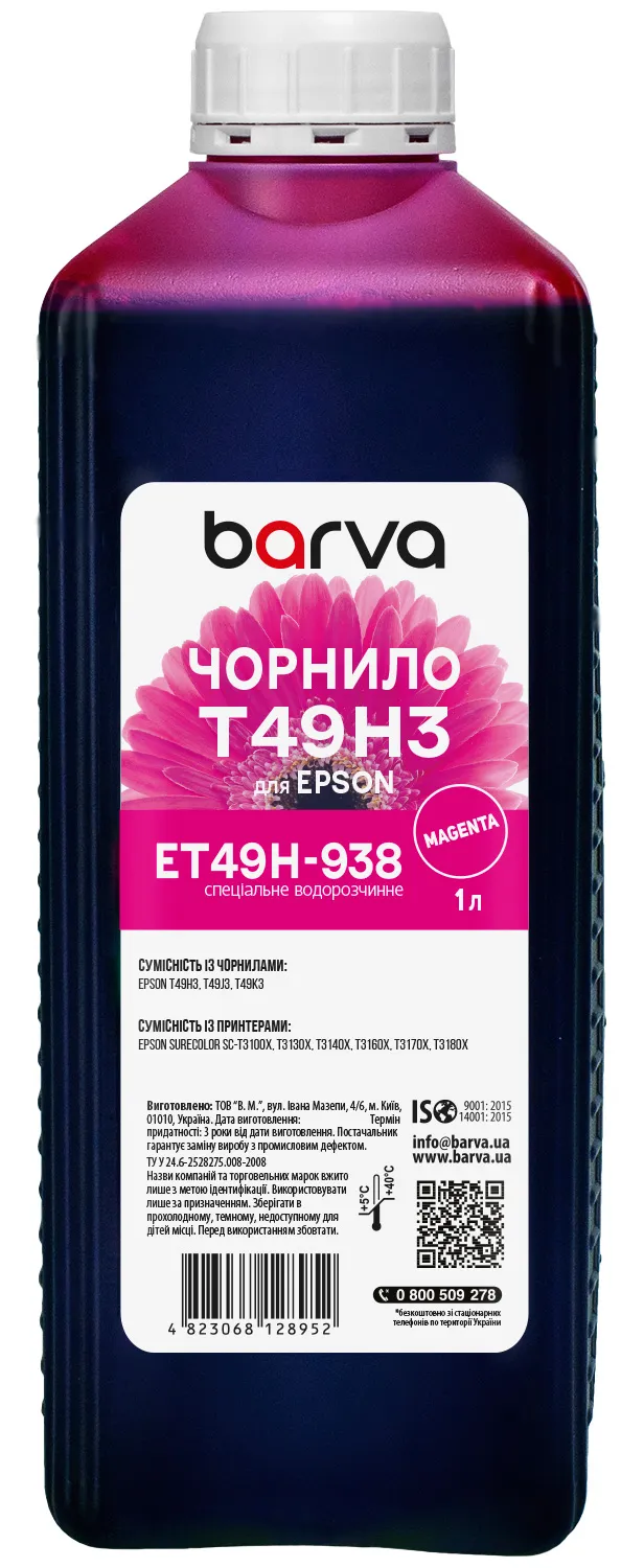 Чернила для Epson T49H3 специальные 1 л, водорастворимые, пурпурные Barva (ET49H-938) - лучший выбор на сайте patronservice.ua