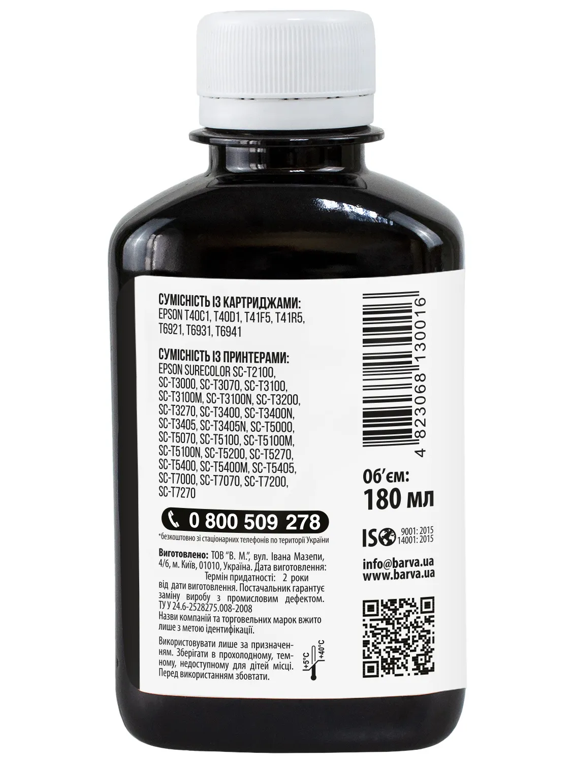 Украинская компания ООО «В.М.» занимается производством чернил под торговой маркой Barva уже много лет. На базе собственной лаборатории осуществляется как разработка новых формул, так и непрерывный контроль качества выпускаемой продукции. При производстве чернил производитель следует стандартам ISO 9001:2015 и ISO 14001:2015.
