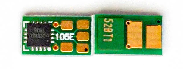 Что такое чип для картриджа? Это небольшая по размеру микросхема, в которую вшита информация о ресурсе самого картриджа, обеспечен функцией обмена данными с принтером. Проще говоря, благодаря чипу аппарат может посчитать количество отпечатанных страниц. В момент, когда счётчик страниц подошел к концу, вы увидите предупреждение о том, что картридж закончился и его необходимо заменить, даже если в бункере картриджа остался неиспользованный тонер.
