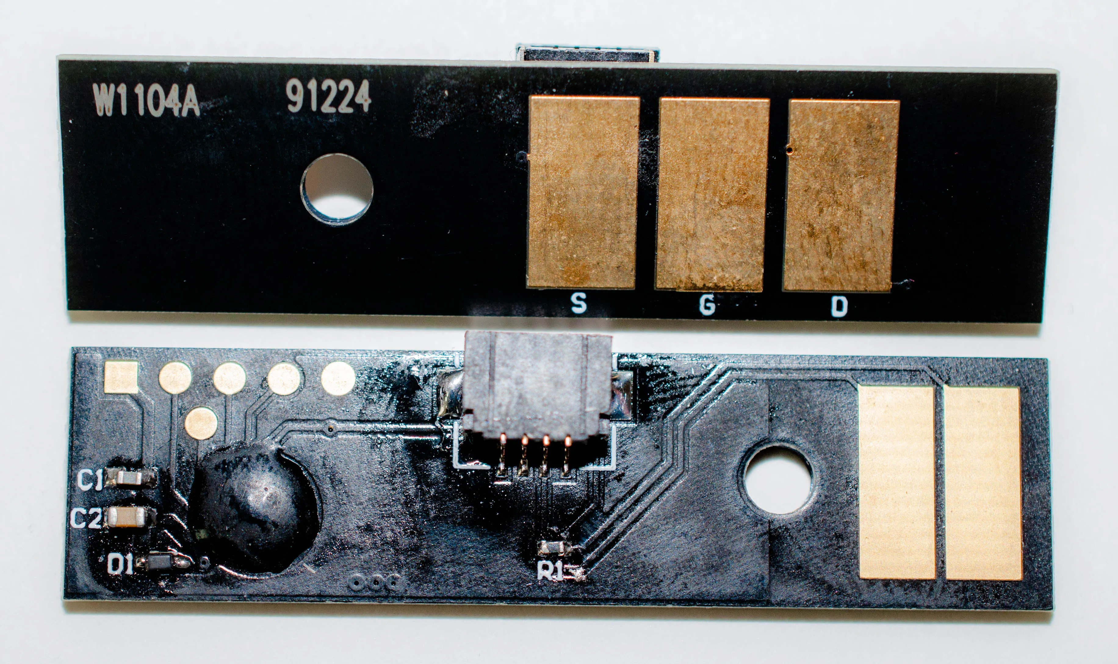 Что такое чип для картриджа? Это небольшая по размеру микросхема, в которую вшита информация о ресурсе самого картриджа, обеспечен функцией обмена данными с принтером. Проще говоря, благодаря чипу аппарат может посчитать количество отпечатанных страниц. В момент, когда счётчик страниц подошел к концу, вы увидите предупреждение о том, что картридж закончился и его необходимо заменить, даже если в бункере картриджа остался неиспользованный тонер.