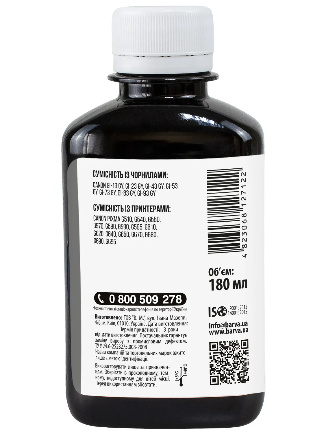 Данная краска для принтера Canon Barva имеет фасовку – 180 мл: