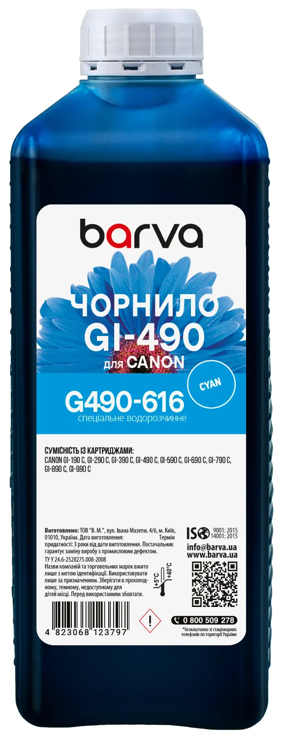 Чернила для Canon GI-490 C специальные 1 л, водорастворимые, голубые Barva (G490-616) - лучший выбор на сайте patronservice.ua