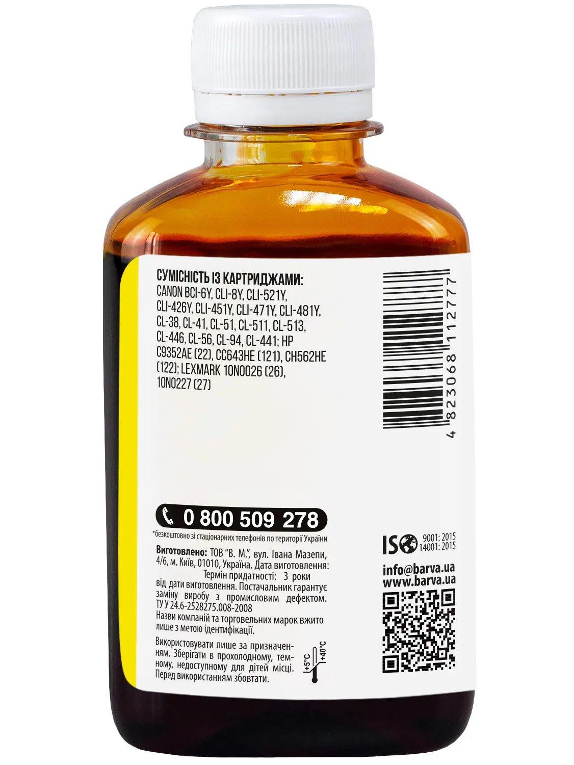 Украинская компания ООО «В.М.» занимается производством чернил под торговой маркой Barva уже много лет. На базе собственной лаборатории осуществляется как разработка новых формул, так и непрерывный контроль качества выпускаемой продукции. При производстве чернил производитель следует стандартам ISO 9001:2015 и ISO 14001:2015.