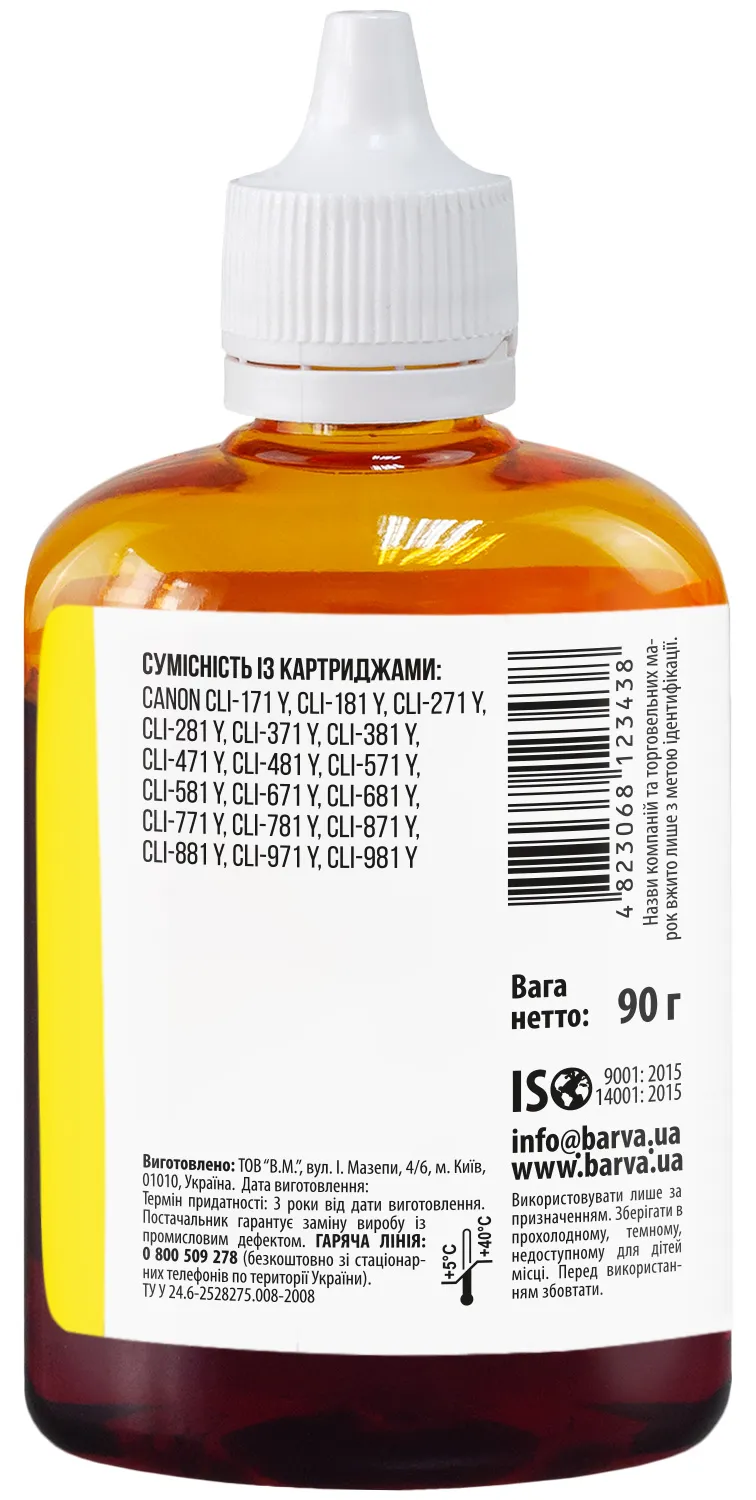 Вы можете купить Чернила совместимые для Canon CLI-471/CLI-481 Y специальные 90 г, водорастворимые, желтые Barva (C471-556) в нашем интернет-магазине с доставкой по Киеву и всей Украине.