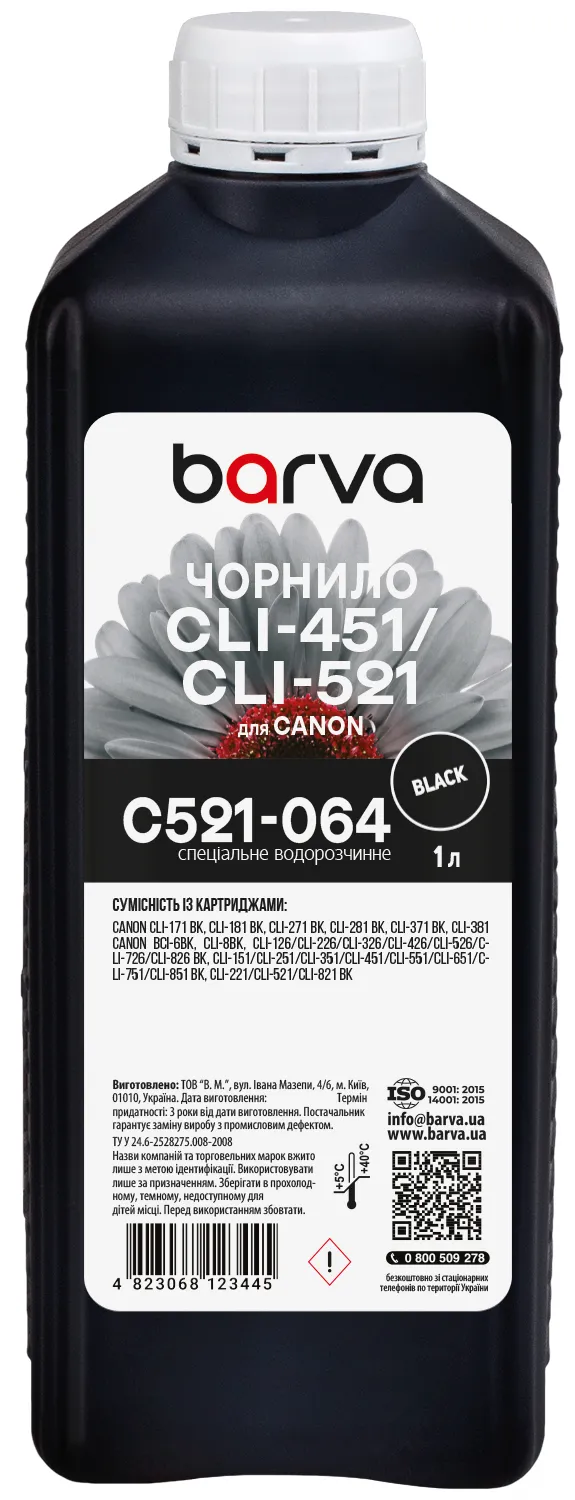 Чернила для Canon CLI-426/CLI-451/CLI-521 специальные 1 л, водорастворимые, черные Barva (C521-064) - лучший выбор на сайте patronservice.ua