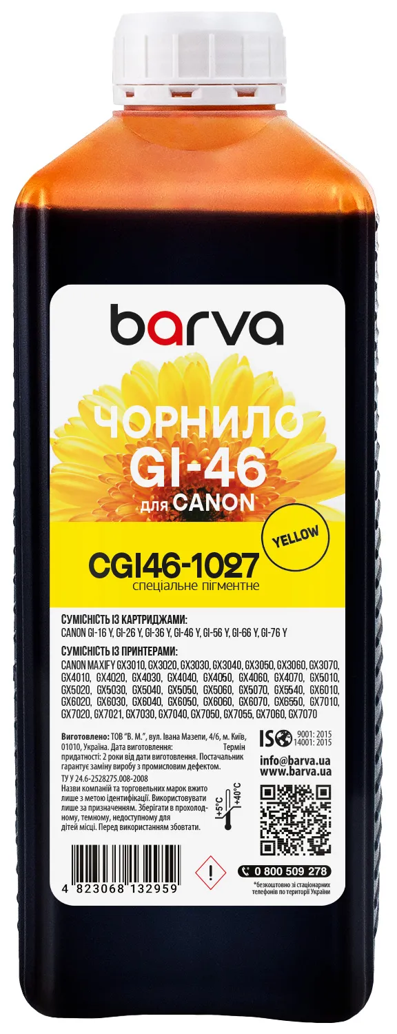 Вы можете купить Чернила для Canon GI-46 Y специальные 1 л, пигментные, желтые Barva (CGI46-1027) в нашем интернет-магазине с доставкой по Киеву и всей Украине.