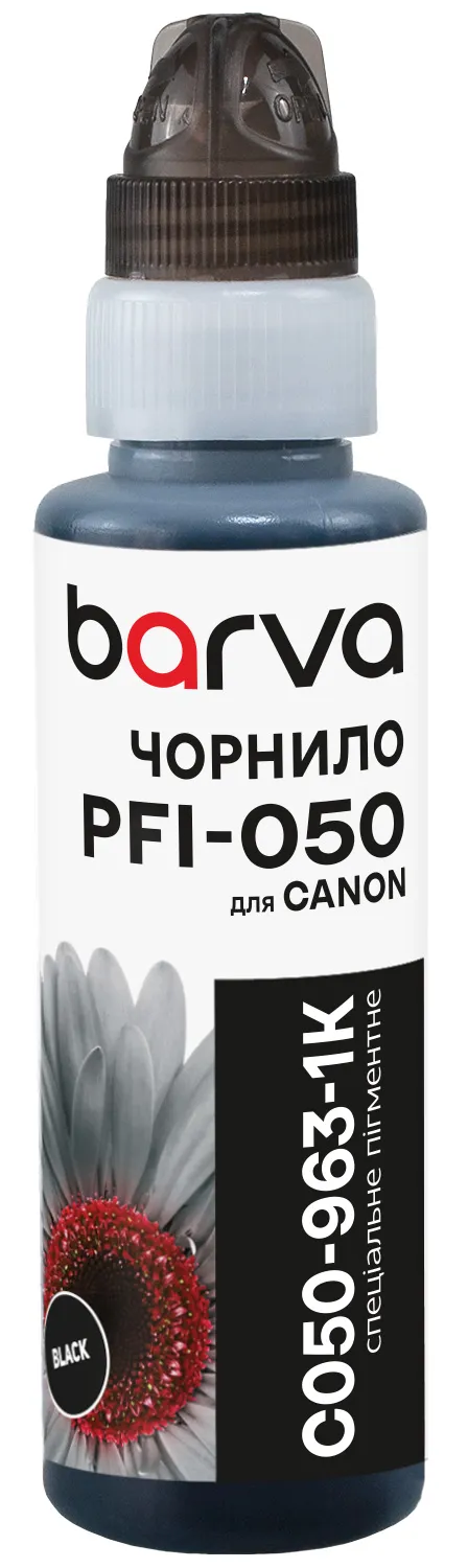 - Чернила для Canon PFI-050 BK специальные 100 мл, флакон OneKey (1K), пигментные, черные Barva (C050-963-1K)