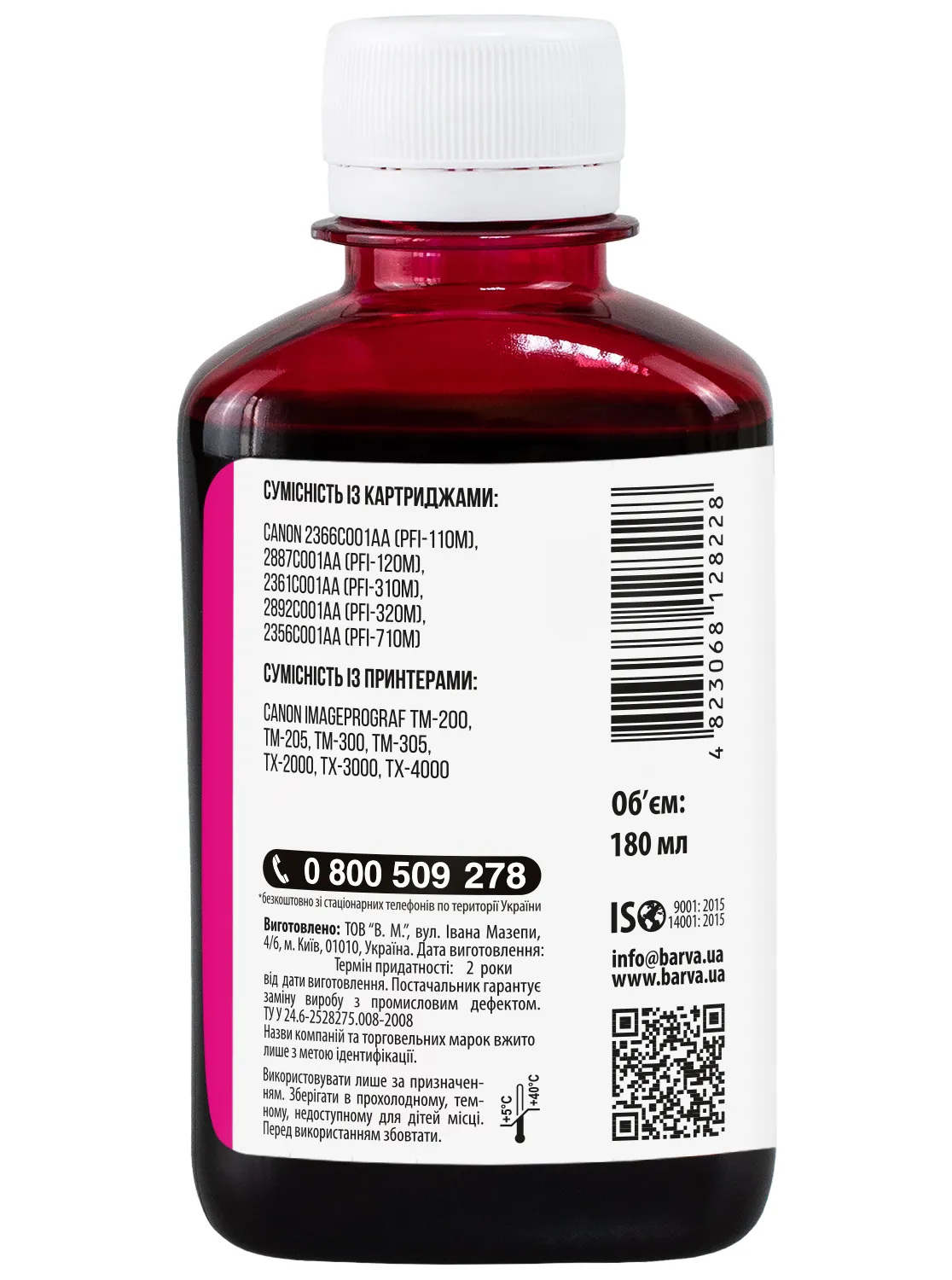 Украинская компания ООО «В.М.» занимается производством чернил под торговой маркой Barva уже много лет. На базе собственной лаборатории осуществляется как разработка новых формул, так и непрерывный контроль качества выпускаемой продукции. При производстве чернил производитель следует стандартам ISO 9001:2015 и ISO 14001:2015.