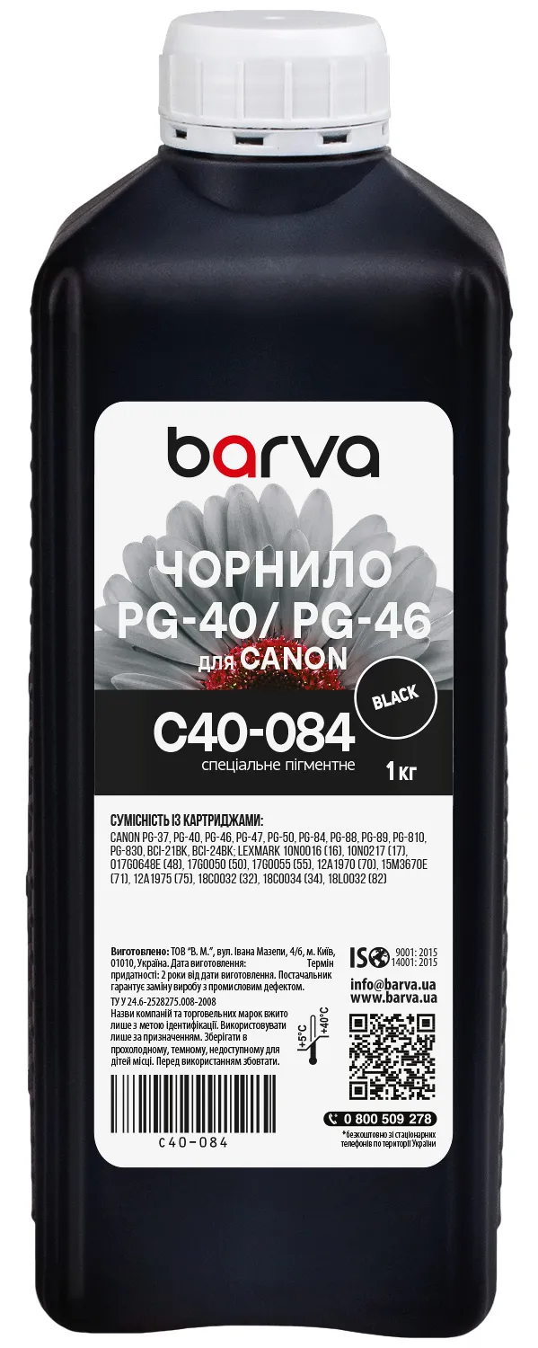 Вы можете купить Чернила для Canon PG-40/PG-46/PG-84 специальные 1 л, пигментные, черные Barva (C40-084) в нашем интернет-магазине с доставкой по Киеву и всей Украине.