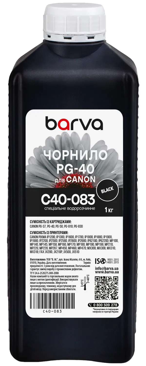Чернила для Canon PG-37/PG-40/PG-50 специальные 1 л, водорастворимые, черные Barva (C40-083) - заказывайте на сайте patronservice.ua