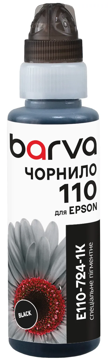 - Чернила для Epson EcoTank M1170/M2170/M3170, совместимые 110 BK, специальные, 100 мл, флакон OneKey (1K), пигментные, черные Barva (E110-724-1K)