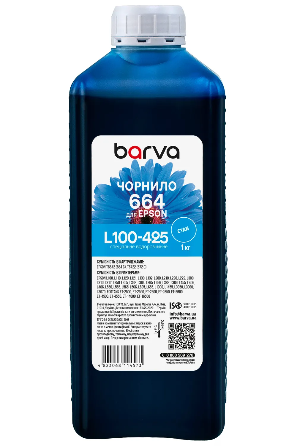 Вы можете купить Чернила совместимые для Epson 664 C специальные 1 кг, водорастворимые, голубые Barva (L100-425) в нашем интернет-магазине с доставкой по Киеву и всей Украине.
