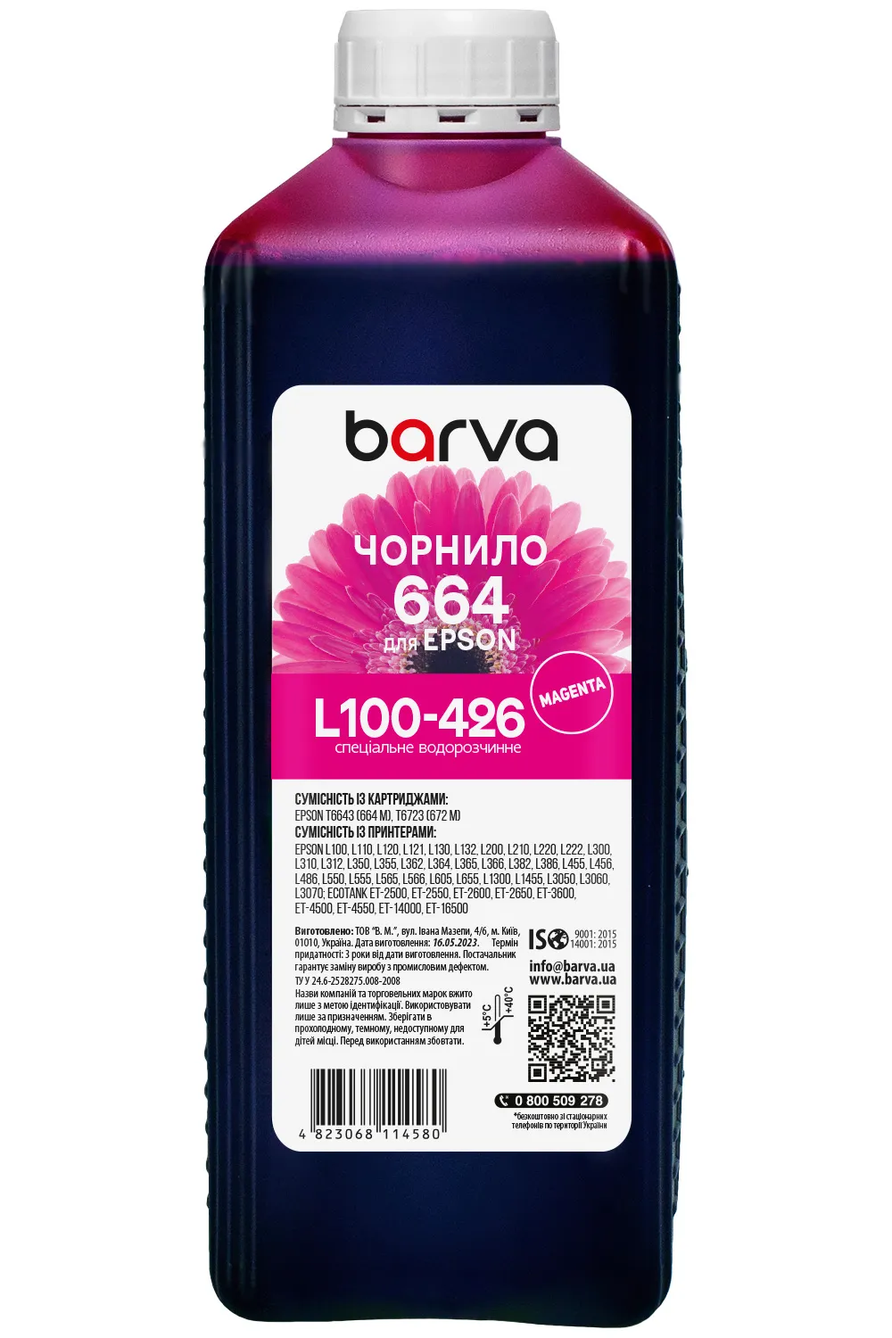 Чернила совместимые для Epson 664 M специальные 1 кг, водорастворимые, пурпурные Barva (L100-426) - быстрая консультация по вашему заказу