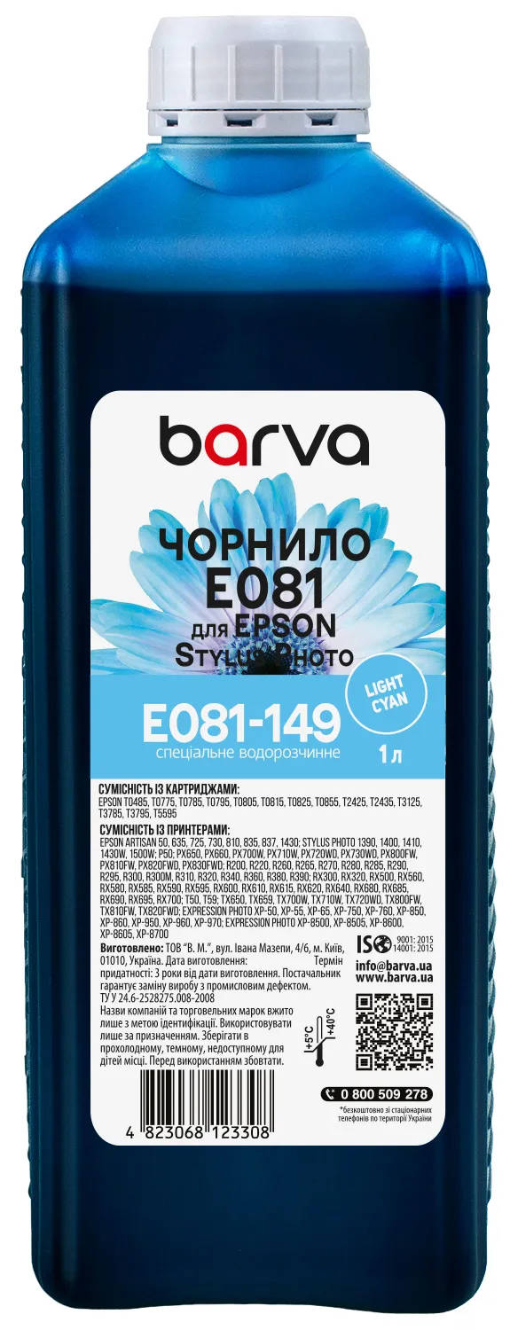 Вы можете купить Чернила для Epson T0485/T0805/T0815 специальные 1 л, водорастворимые, светло-голубые Barva (E081-149) в нашем интернет-магазине с доставкой по Киеву и всей Украине.
