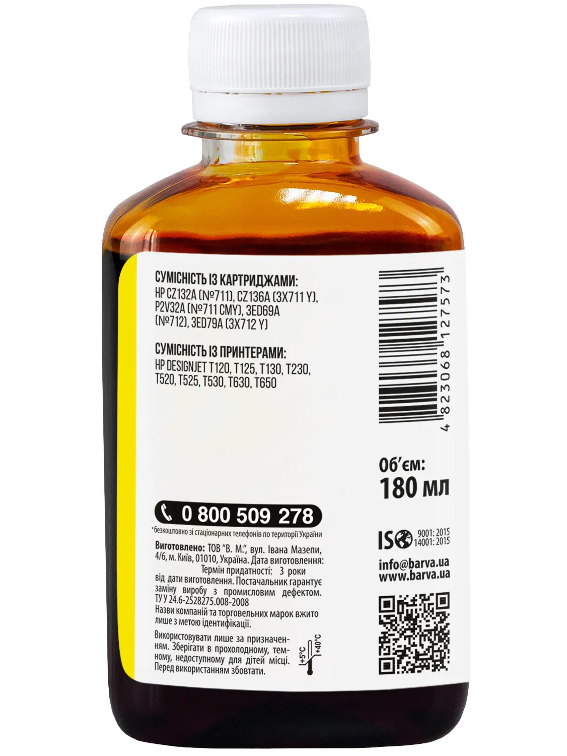Чернила для HP 711/712 Y специальные 180 мл, водорастворимые, желтые Barva (H711-860) - быстрая консультация по вашему заказу