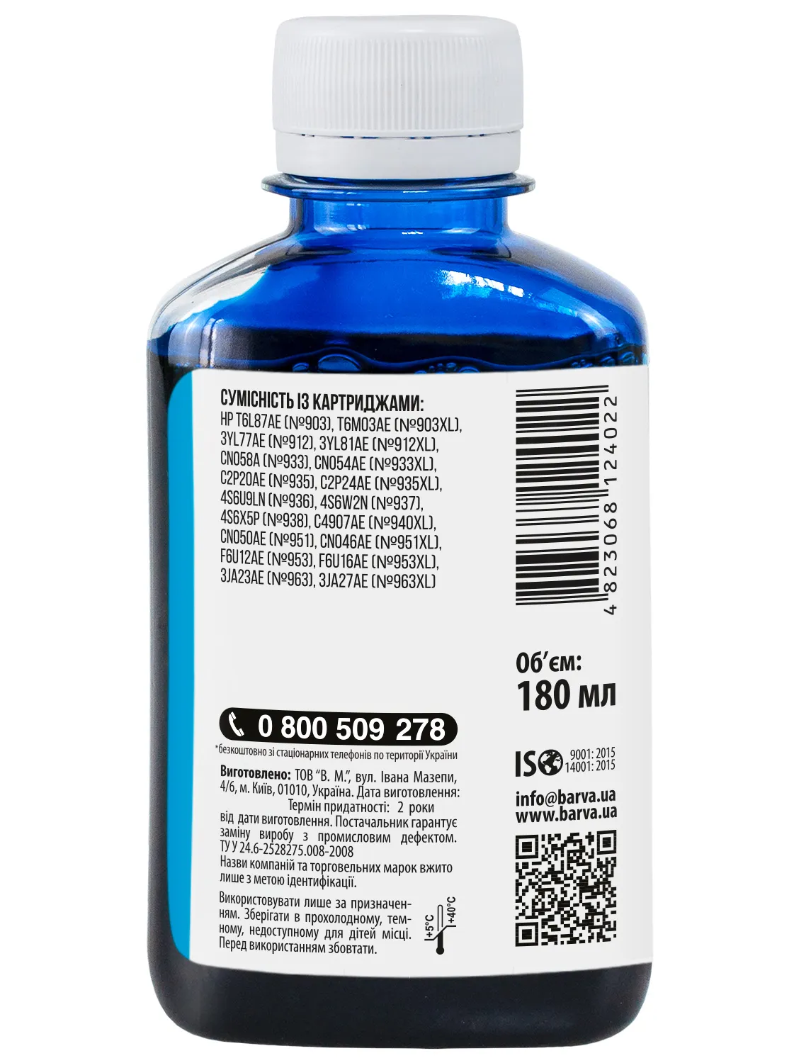 Украинская компания ООО «В.М.» занимается производством чернил под торговой маркой Barva уже много лет. На базе собственной лаборатории осуществляется как разработка новых формул, так и непрерывный контроль качества выпускаемой продукции. При производстве чернил производитель следует стандартам ISO 9001:2015 и ISO 14001:2015.