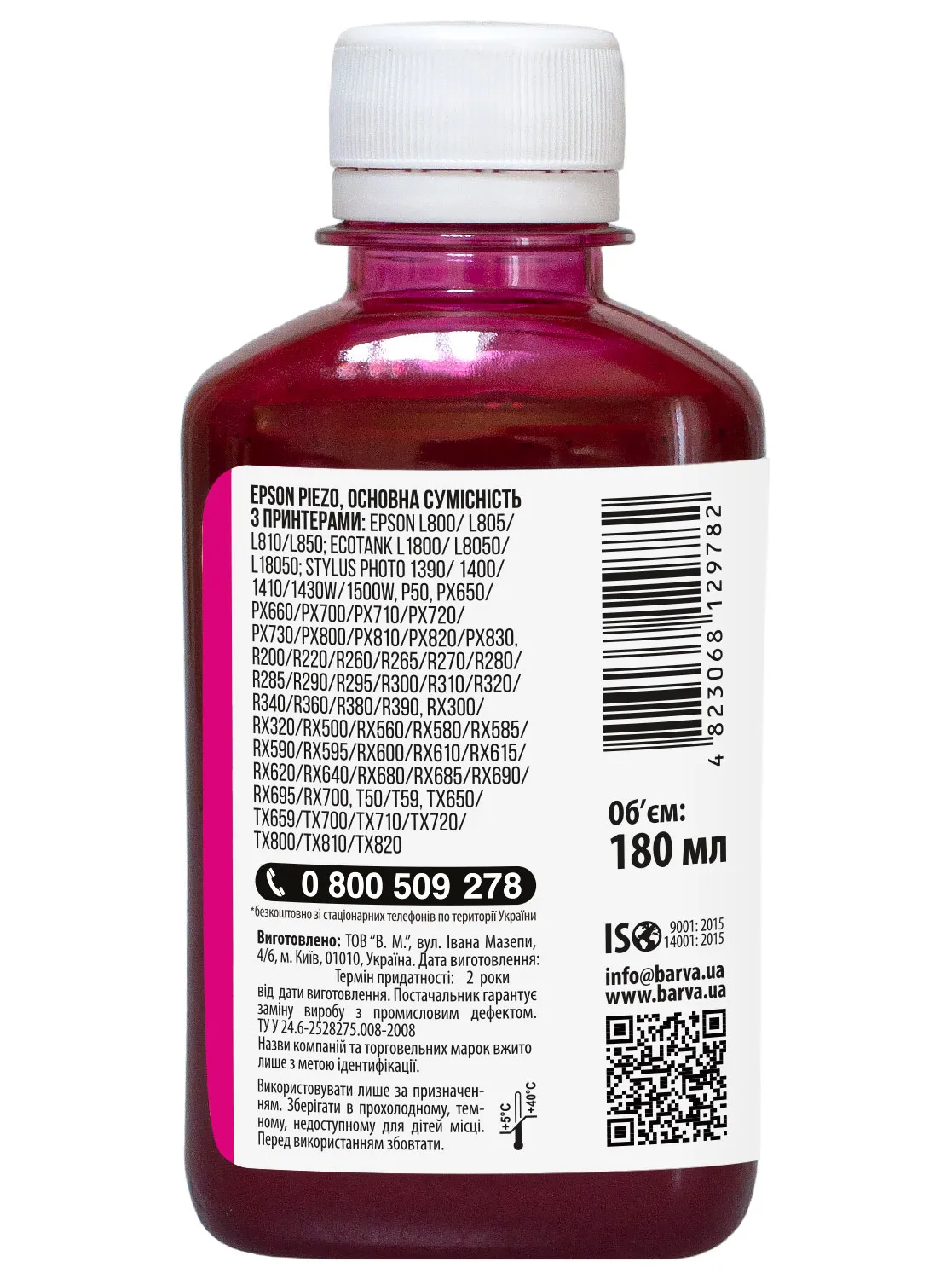 Украинская компания ООО «В.М.» производит чернила под торговой маркой Barva уже много лет. На базе собственной лаборатории происходит как разработка новых формул, так и непрерывный контроль качества выпускаемой продукции. При производстве чернил производитель следует стандартам ISO 9001:2015 и ISO 14001:2015.
