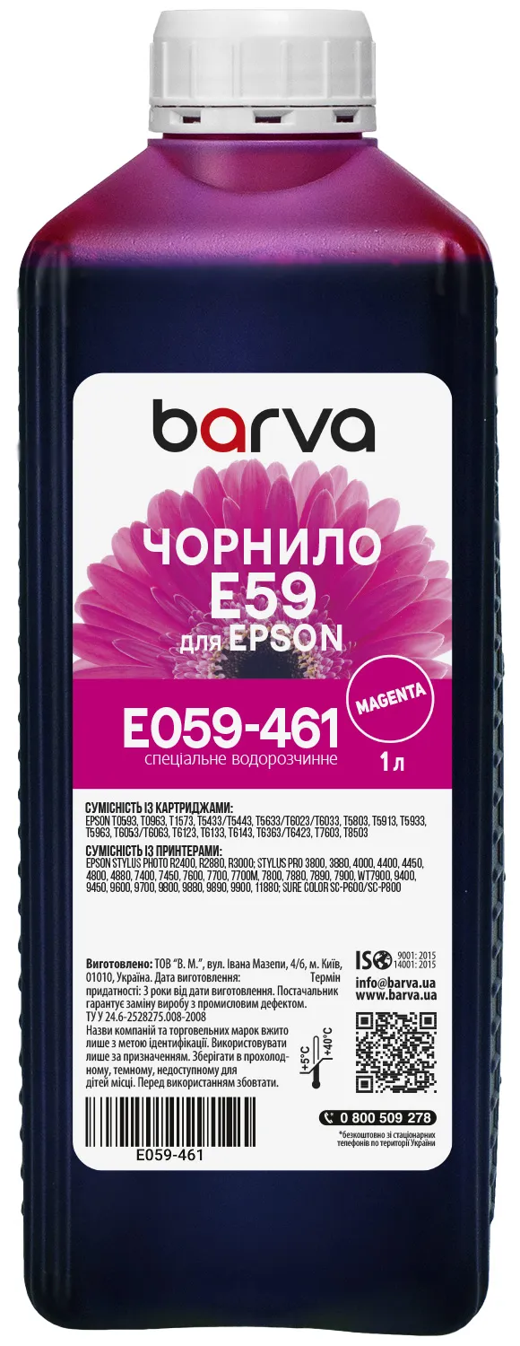 Чернила для Epson T0593/T6033/T1573 специальные 1 л, водорастворимые, пурпурные Barva (E059-461) - заказывайте на сайте patronservice.ua