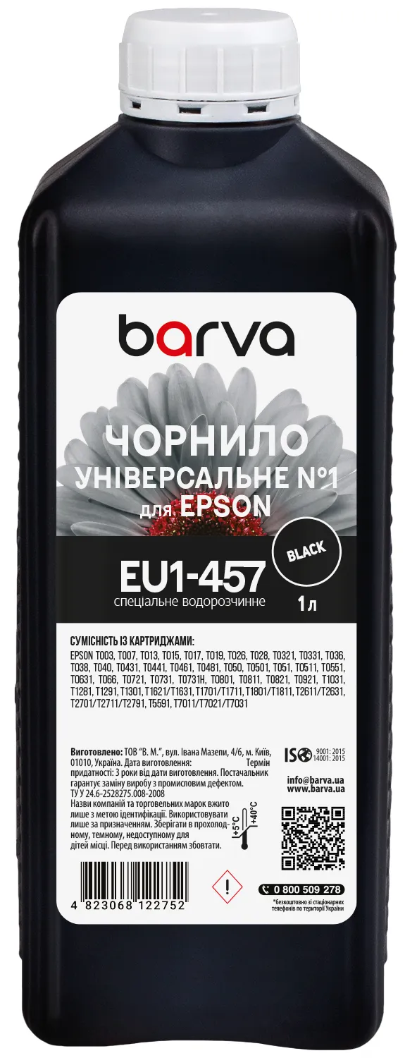 Вы можете купить Чернила для Epson универсальные №1 1 кг, водорастворимые, черные Barva (EU1-457) в нашем интернет-магазине с доставкой по Киеву и всей Украине.