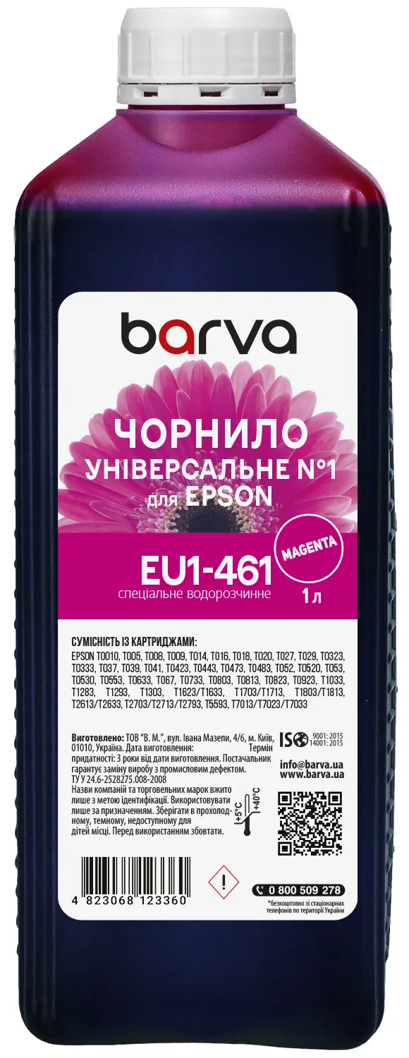 Чернила для Epson универсальные №1 1 л, водорастворимые, пурпурные Barva (EU1-461) - быстрая консультация по вашему заказу