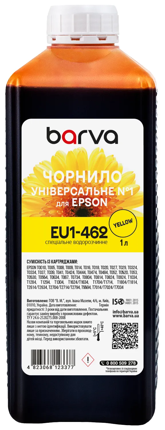 - Чернила для Epson универсальные №1 1 л, водорастворимые, желтые Barva (EU1-462)