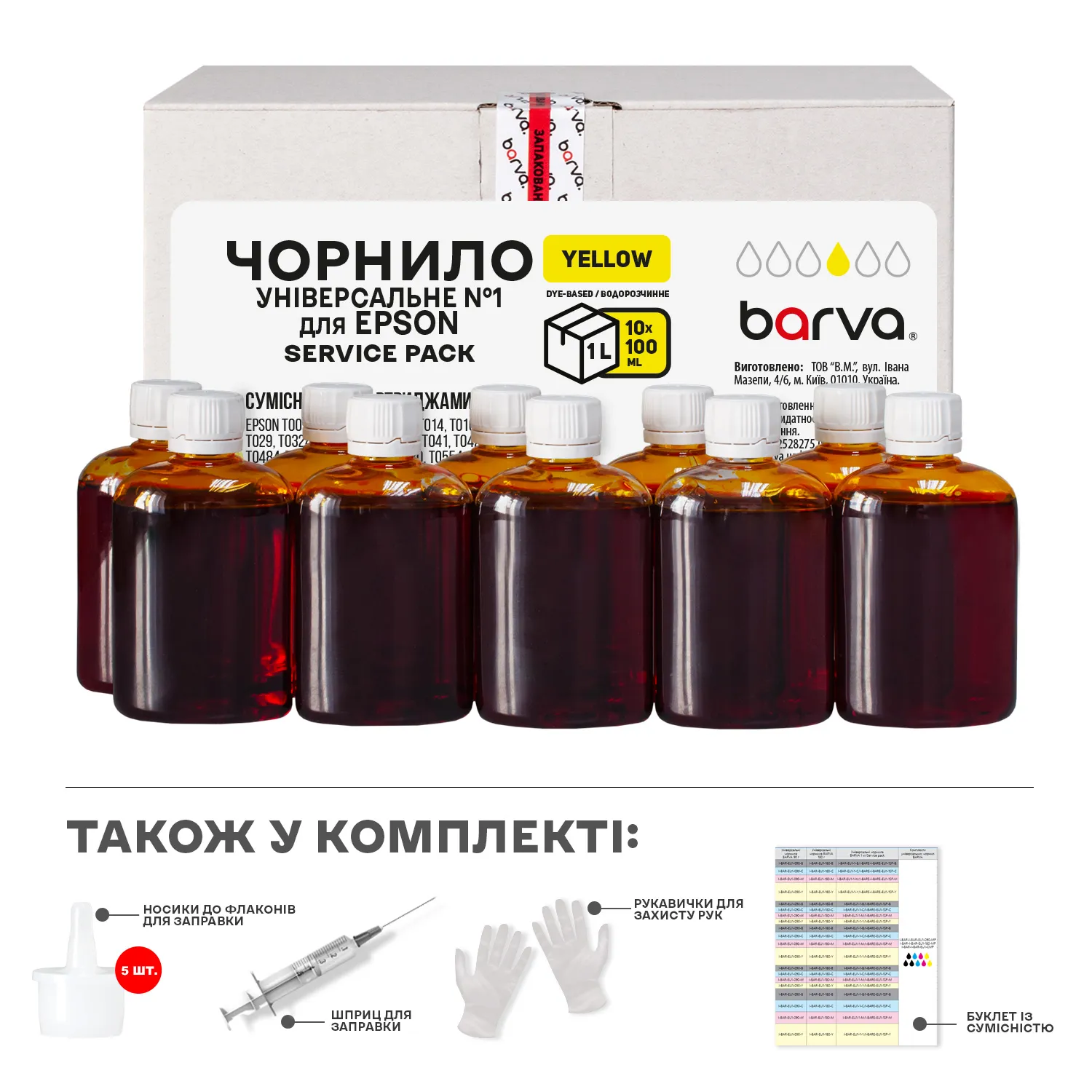 Вы можете купить Чернила совместимые для Epson универсальные №1 10x100 мл, водорастворимые, желтые Service Pack Barva (EU1-1SP-Y) в нашем интернет-магазине с доставкой по Киеву и всей Украине.