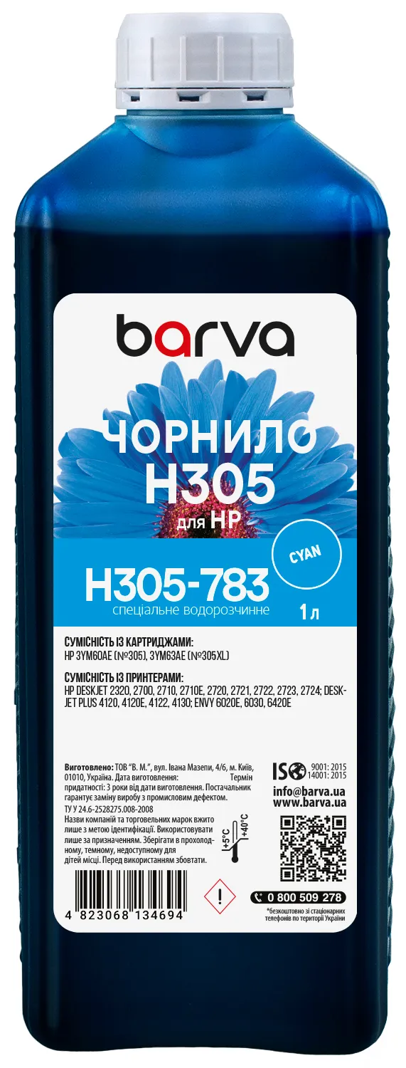 Вы можете купить Чернила для HP 305 специальные 1 л, водорастворимые, голубые Barva (H305-783) в нашем интернет-магазине с доставкой по Киеву и всей Украине.