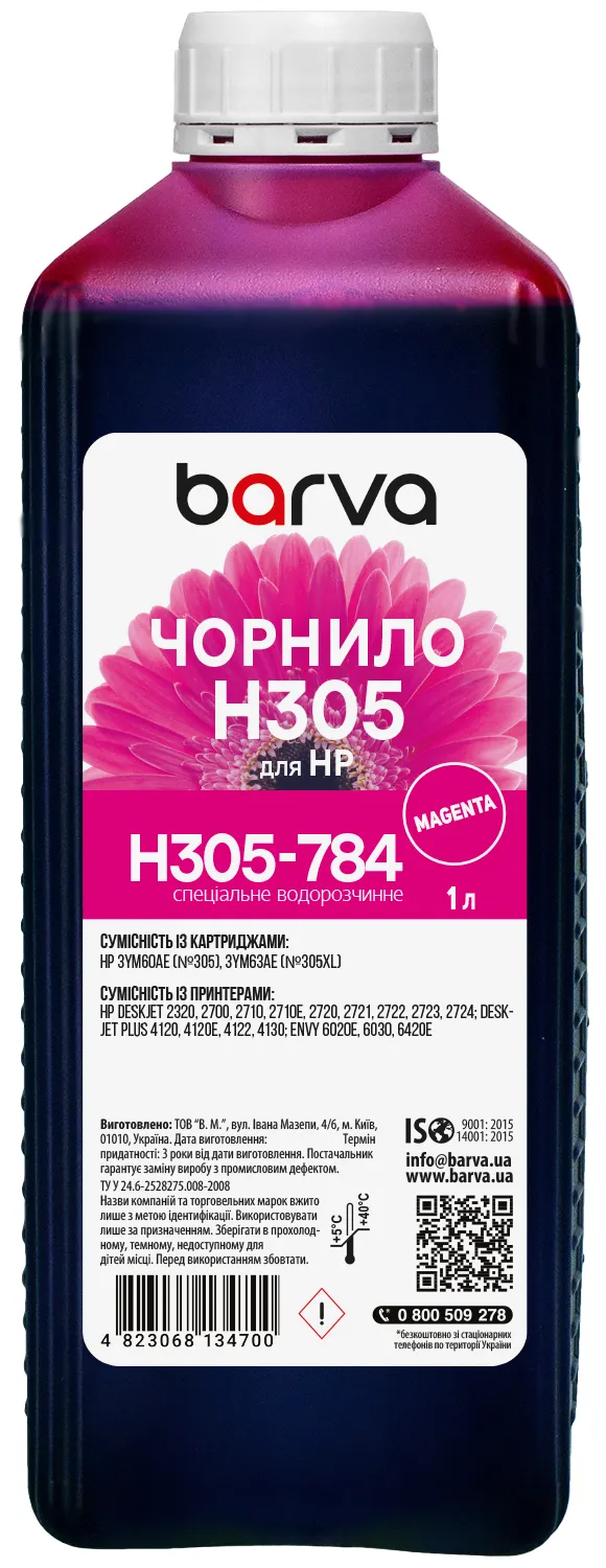 Чернила H305-784 Barva имеют официальную гарантию от производителя – ООО "В.М.".
