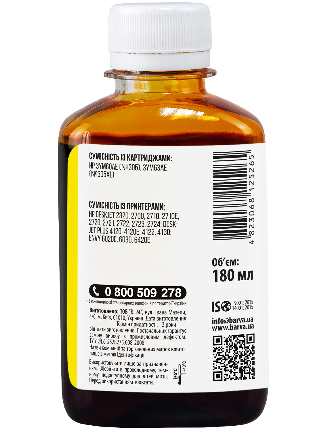 Украинская компания ООО «В.М.» занимается производством чернил под торговой маркой Barva уже много лет. На базе собственной лаборатории осуществляется как разработка новых формул, так и непрерывный контроль качества выпускаемой продукции. При производстве чернил производитель следует стандартам ISO 9001:2015 и ISO 14001:2015.