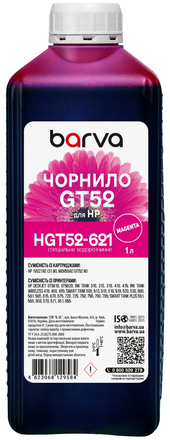 Чернила для HP GT52 M специальные 1 л, водорастворимые, пурпурные Barva (HGT52-621) - заказывайте на сайте patronservice.ua