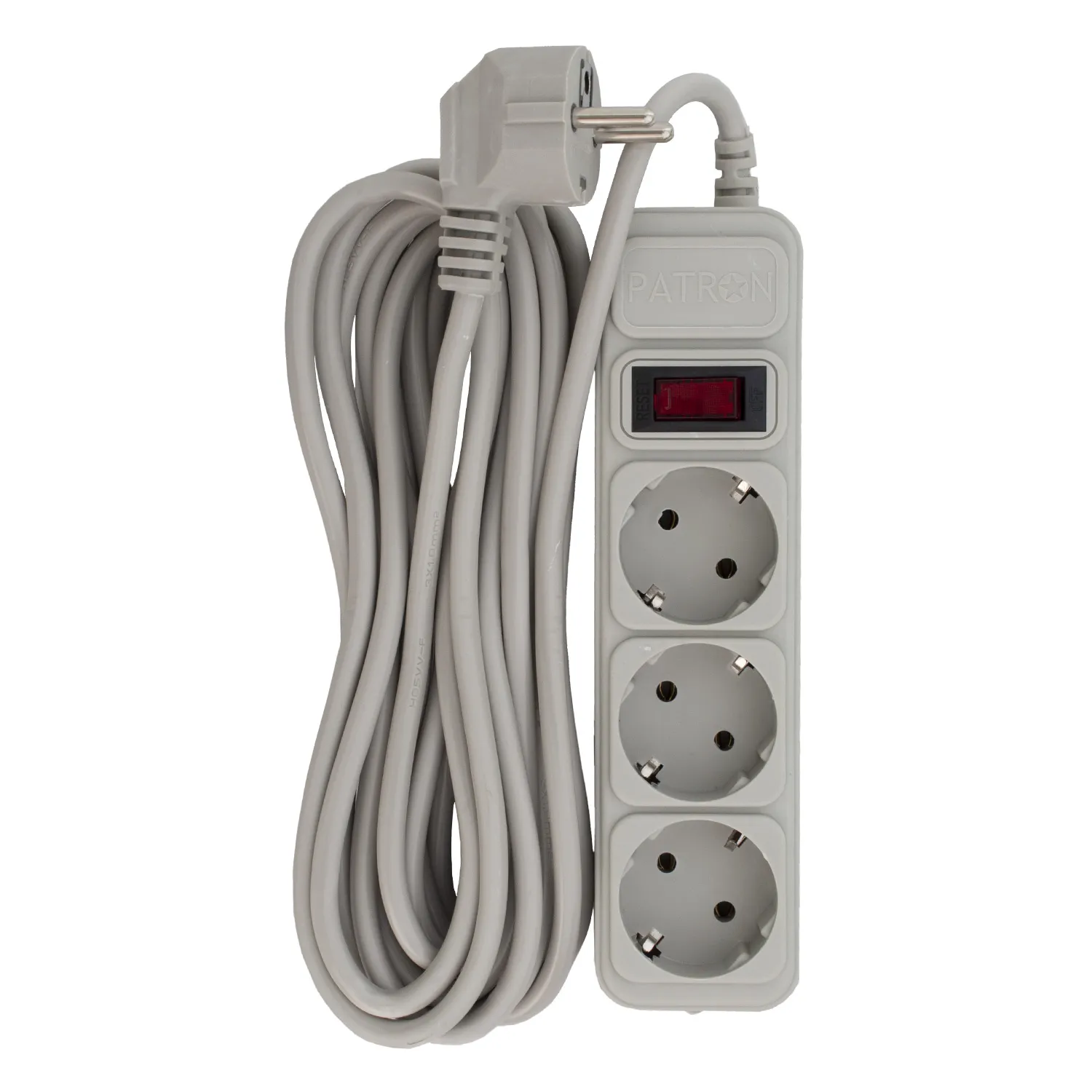 Фильтр сетевой 3 розетки, 5 м, 10 А, 250 В, 3*1мм2, серый Patron (SP-1035-GR)