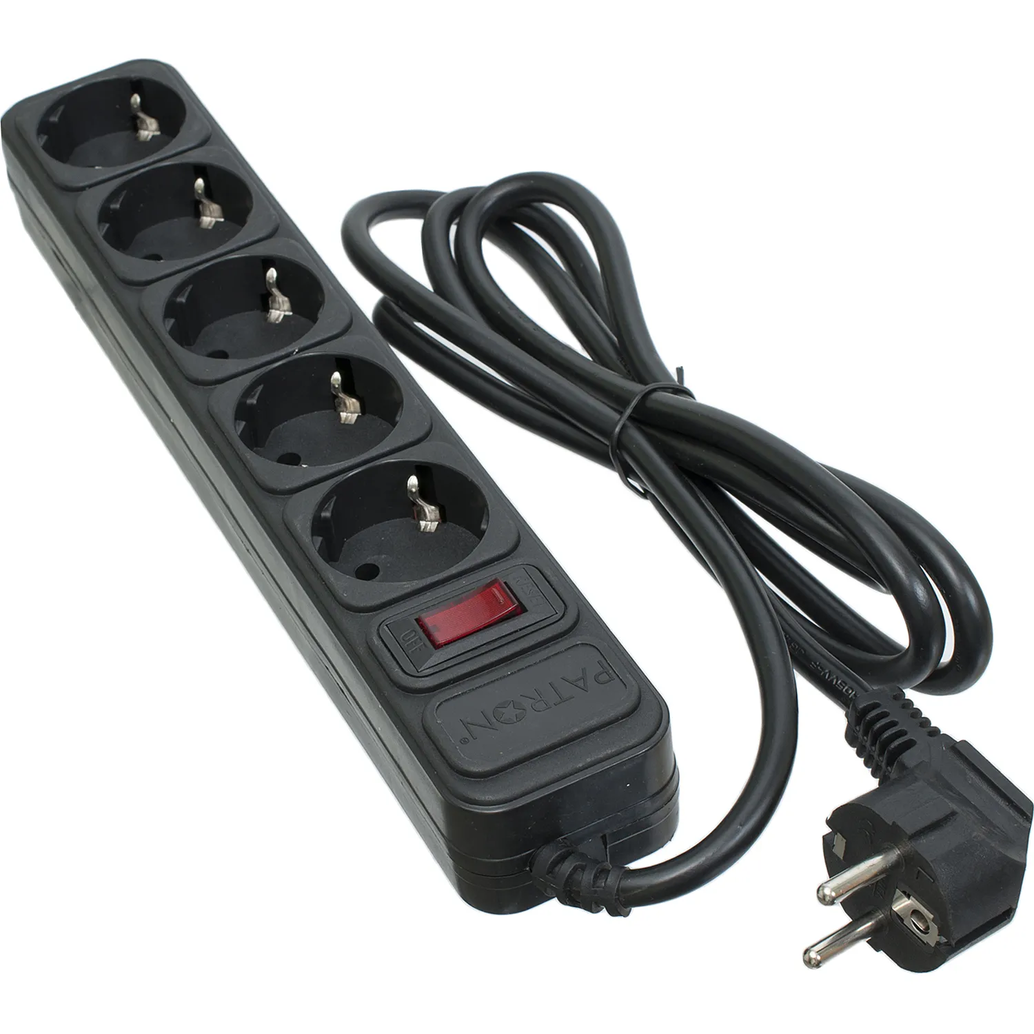 Фильтр сетевой 5 розеток, 1,8 м, черный, 3*1,5мм2 Patron (SP-1652)