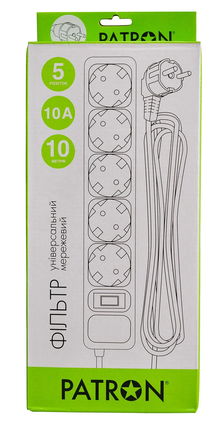 Сетевой фильтр Patron предназначен для подключения широкого спектра бытовой и компьютерной техники. Фильтр имеет универсальные розетки типа "евро" с заземлением, и защищает от перегрузок.